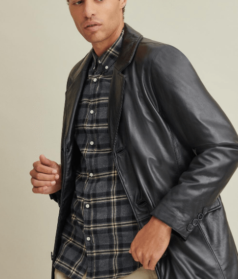Alan Black Leather Coat