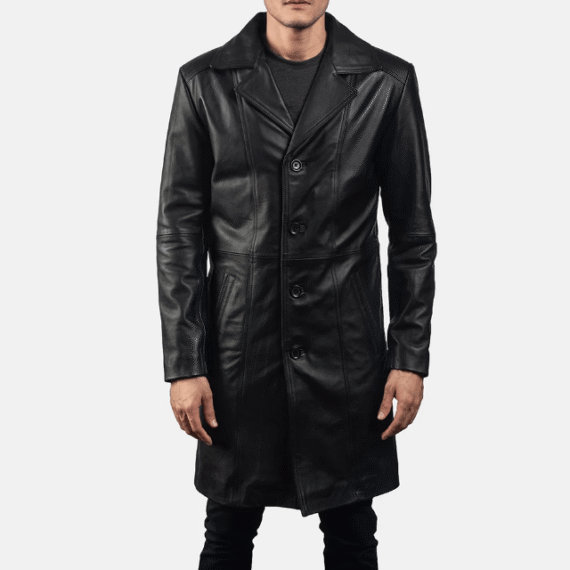 - Asymmetrical full-zip front; notch collar with large metal snaps