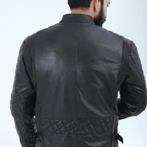 The Conroy Biker Jacket is a classic leather piece. Featuring traditional detailing including an asymmetric zip fastening, zipped cuffs and quilted shoulder panels. Finished with a lightly crinkled effect for a worn-in aesthetic.
