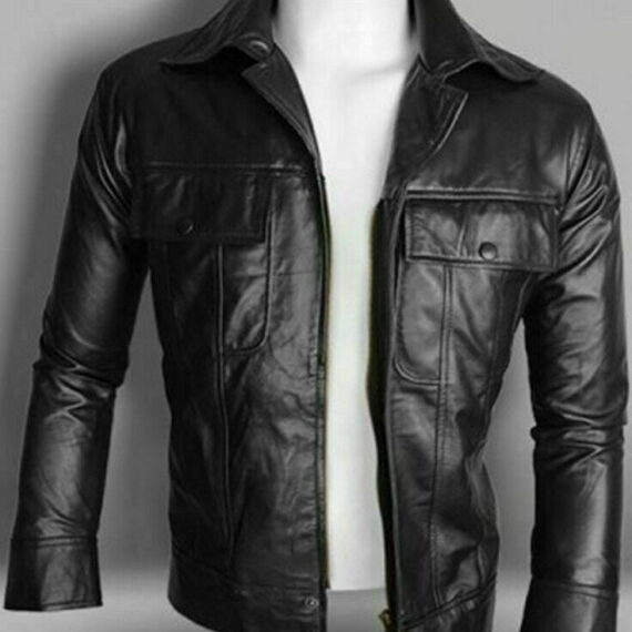 • Elvis Presley Trucker Black Leather Jacket