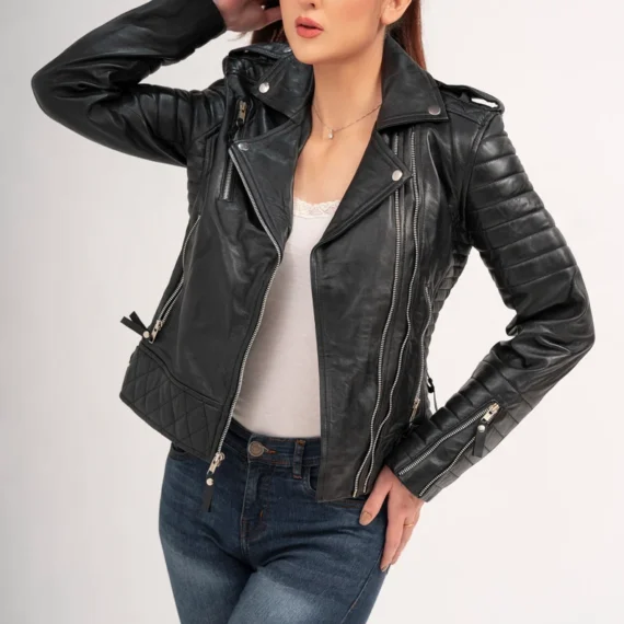 Womens Slim Fit Diamond Quilted Black Leather Jacket