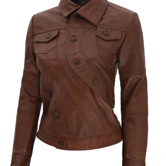 - Front: Asymmetrical Zip Closure, Lapel Collar